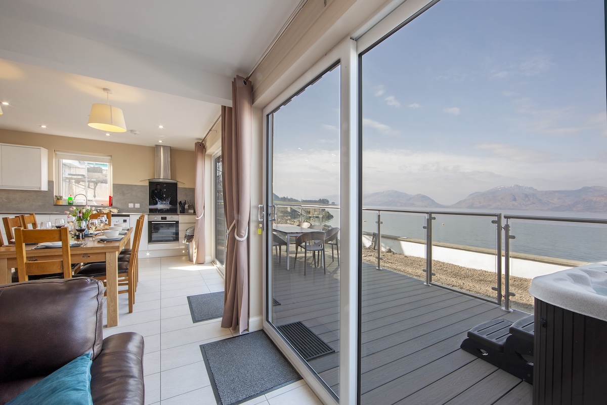 Kentallen Beach Houses are a set of 5 architect-designed villas located on the shores of Loch Linnhe, purpose-built to provide a perfect accommodation experience while you explore Glencoe. Each features their own hot tubs on a private glass-fronted decking, and beach house 1, 3, and 5 feature balconies with panoramic views.